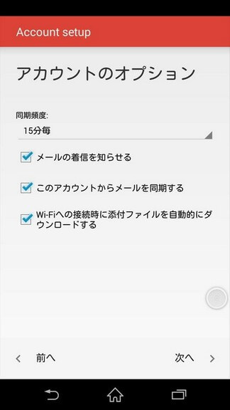 [アカウントのオプション]画面が表示されますので、任意で設定し[次へ]をタップします。