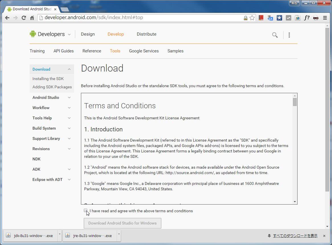 ダウンロードページが表示されるので「I have read and agree with the above terms and conditions」のチェックをオンにする。