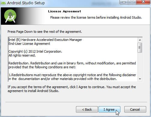 [License Agreement]画面が表示されるので、一応最後まで読んで同意した上で[I Agree]をクリックする。