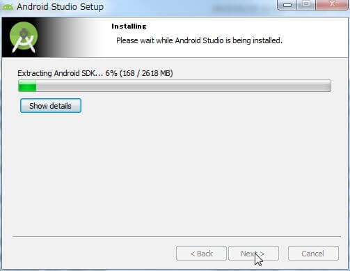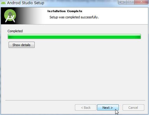 Android Studioのインストールプログラム(android-studio-bundle-135.1740770-windows.exe)がダウンロードされるのでダブルクリックして起動する。