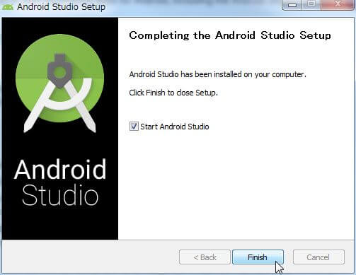 [Comleting the Android Studio Setup]画面が表示されるので[Finish]をクリックする。