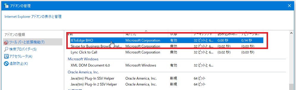 IEを起動るとEdgeが自動的に起動してIEが使用できなようになる仕組みは、IEのアドオン「IEToEdge BHO」による動作となります。