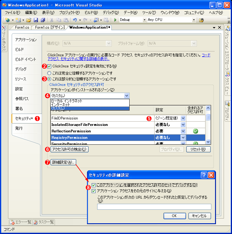- "Visual Studioホスティングプロセスを有効にする"のチェック外す。