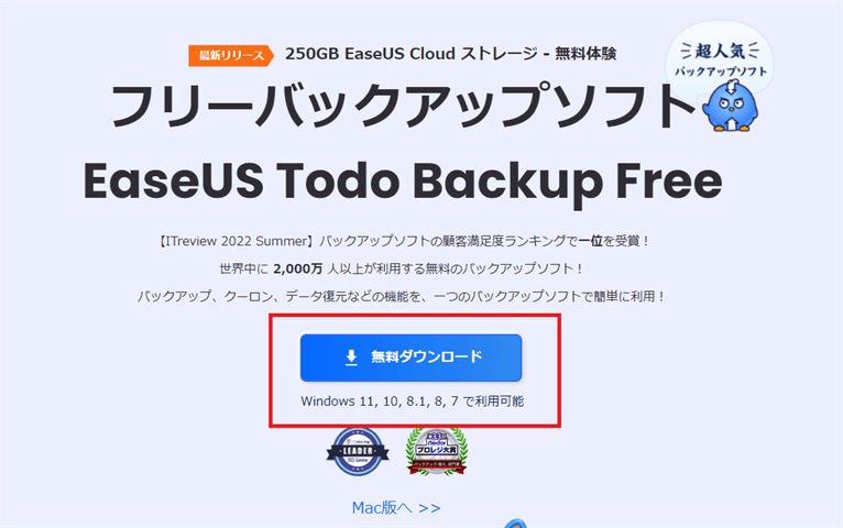 EaseUS Todo Backupは、「Vector プロレジ大賞」を受賞していて一番人気のあるバックアップソフトです。