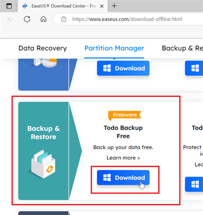 EaseUS Todo Backupのダウンロードサイトを開きます。