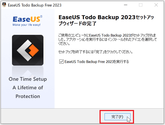 [完了]をクリックすると自動的にEaseUS Todo Backupが起動してきます。
