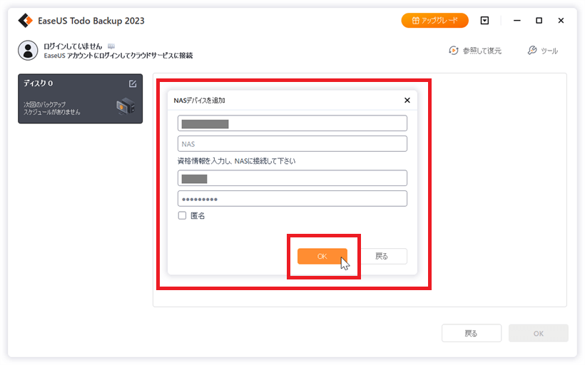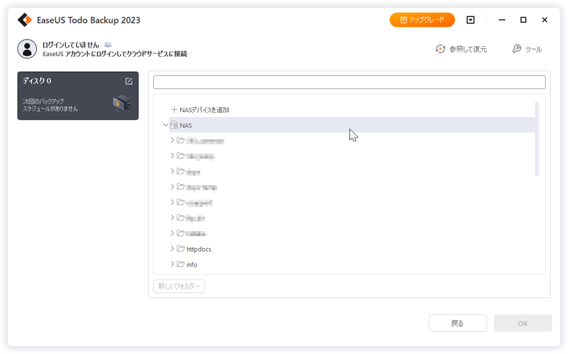 EaseUS Todo Backupは、バックアップの保存先としてNASなどのネットワーク上の共有ディスクへの保存もサポートしています。