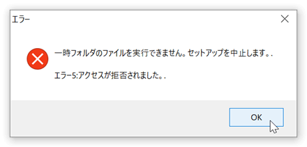 インストールファイルを実行した際に以下のようなエラーメッセージが表示される場合があります。