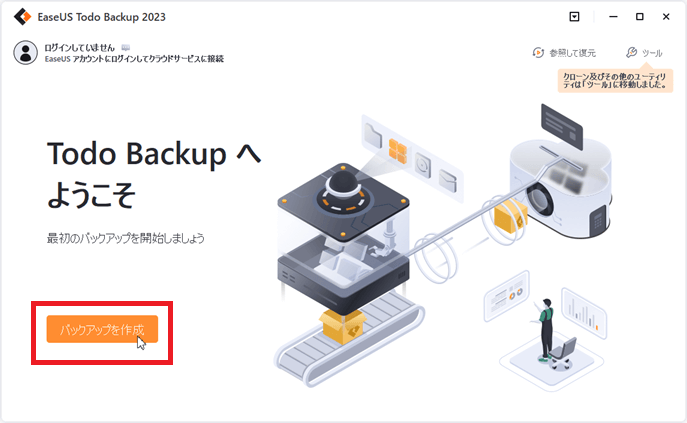 EaseUS Todo Backup を起動し、[バックアップを作成]をクリックします。