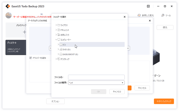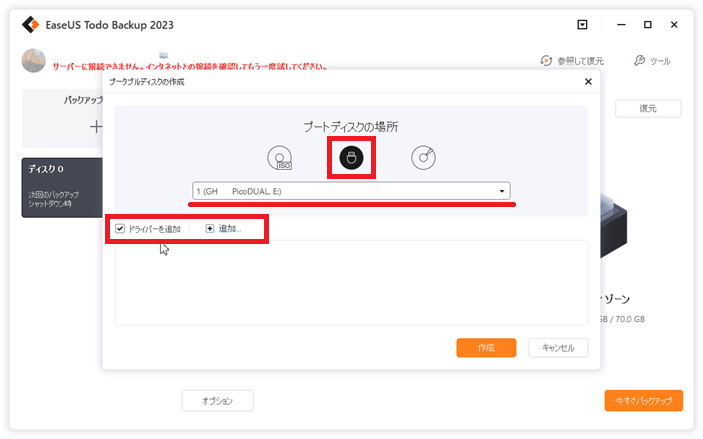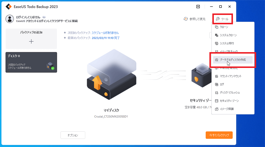 EaseUS Todo Backupは、ブータブルディスク(起動ディスク)の作成ができます。