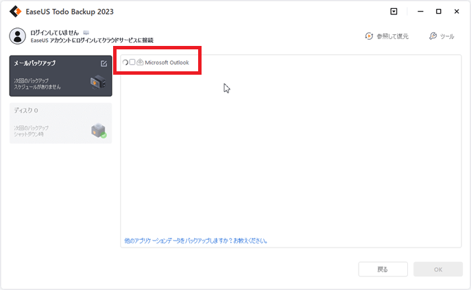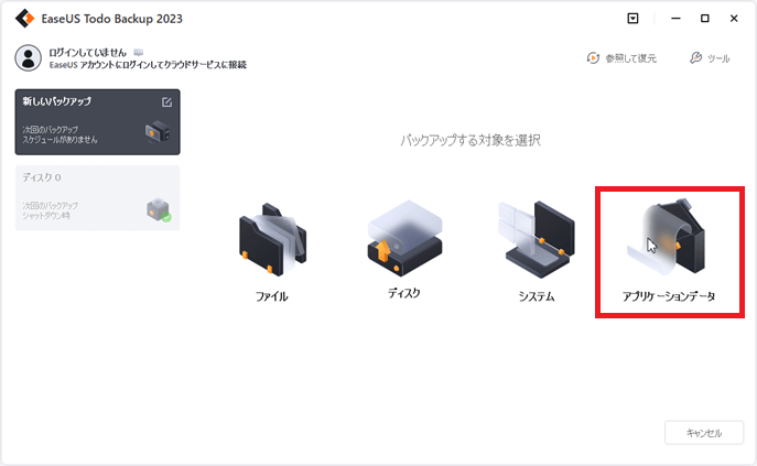 EaseUS Todo Backupのバックアップ画面から[アプリケーションデータ]をクリックします。