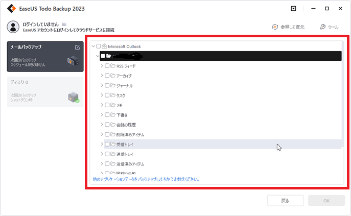 どのフォルダをバックアップするか選択してバックアップが可能です。