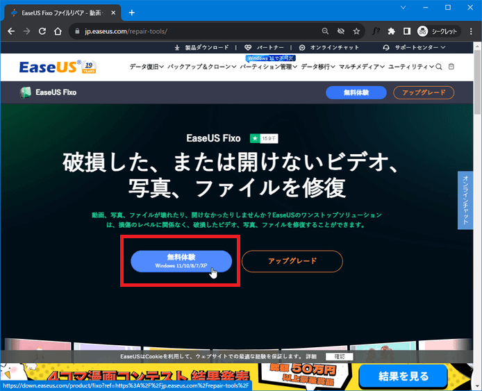EaseUS Fixoのダウンロードページを開きます。