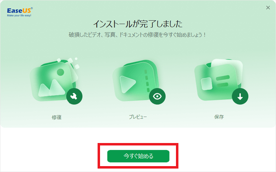 [今すぐ始める]をクリックするとEaseUS Fixoが起動します。