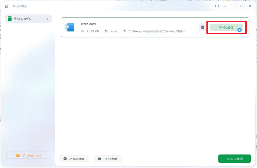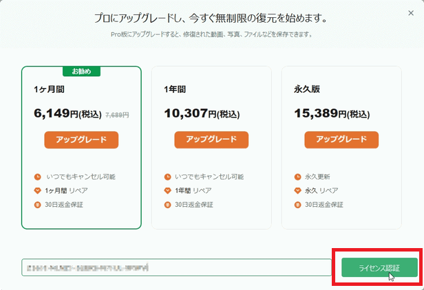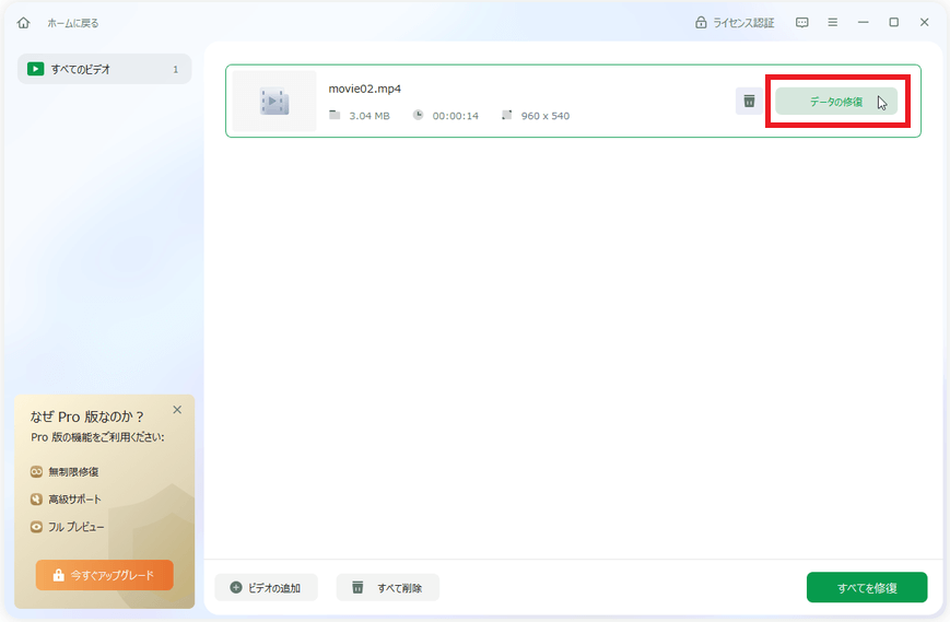 なので、ここからはライセンス登録した有償版で実際の修復を試してみます。