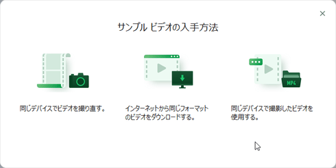 このメッセージにある「サンプル ビデオ」とは以下のようなビデオになります。