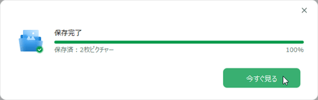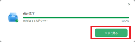 保存先フォルダを指定して保存し、[今すぐ見る]をクリックして画像を確認します。