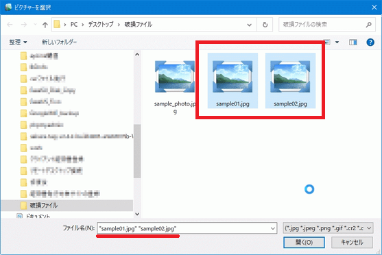 一度に複数の画像ファイルを修復する