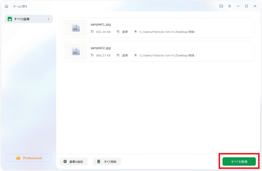 次に複数の画像を一括で修復させる手順を紹介します。