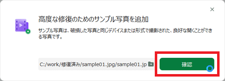 「高度な修復のためにサンプル ビデオを追加」画面が表示されます。
