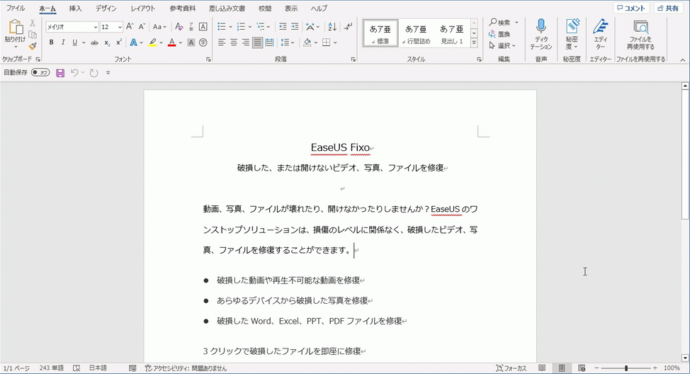 Microsoft Officeアプリケーションのファイルに関する修復についてEaseUSの公式ページでも紹介されていますので参考にしてください。