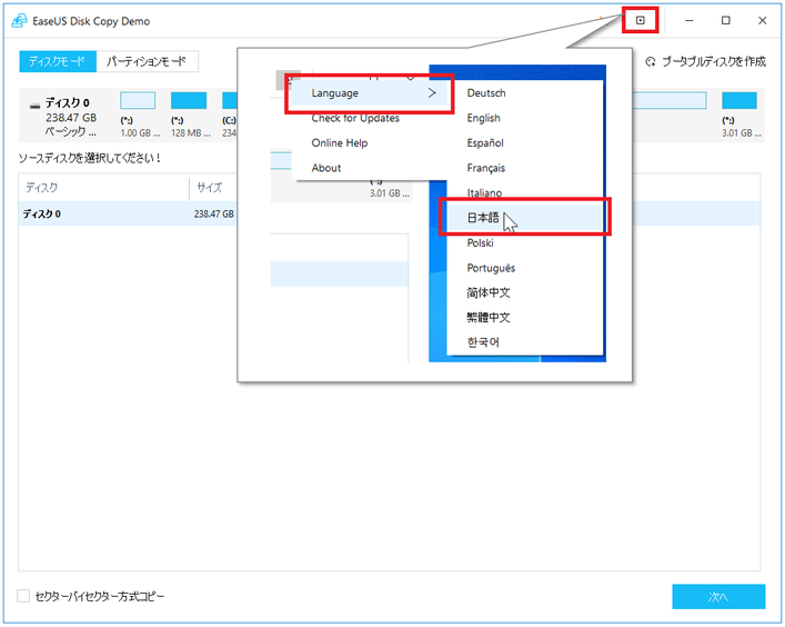 EaseUS Disk Copyでブータブルディスクを作成しておけば、ブータブルディスクから起動した際に EaseUS Disk Copyが使える状態で起動することができます。