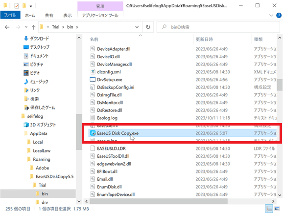 C:\Users\ログインユーザー名\AppData\Roaming\EaseUSDiskCopy5.5\Trial\bin\EaseUS Disk Copy.exe