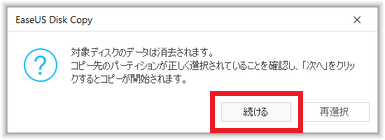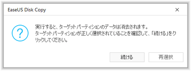 ターゲットディスクにデータ等、大切なファイルが保管されている場合は必ず事前に別のディスクに退避させておいてください。