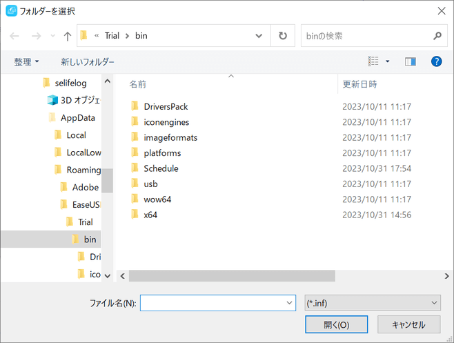 infファイルを指定するダイアログボックスが表示されるので、組み込みたいドライバのinfファイルを指定してブータブルディスクに追加してください。