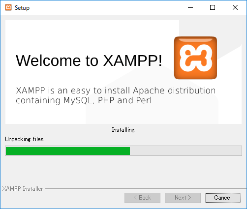 XAMPPのインストールが開始されます。