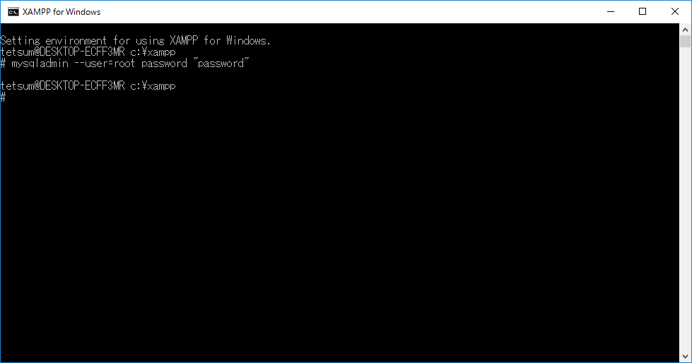 以下の画面のように表示されればパスワードがきちんと設定されていることになるので、DOSコマンドプロンプト画面は[X]ボタンをクリックして閉じてください。