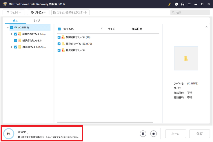 この警告の意味ですが、もし復旧しようとしているファイルがCドライブに存在する場合、CドライブにMiniTool Power Data Recovery Freeをインストールすると、インストールファイルが復旧しようとしているファイルを上書きしてしまう可能性があります。