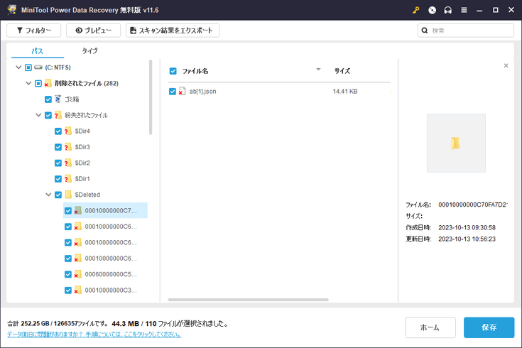 もし誤ってファイルやフォルダを削除してしまったりしたらMiniTool Power Data Recovery Freeを使用してデータが復旧できるか試してみてください。