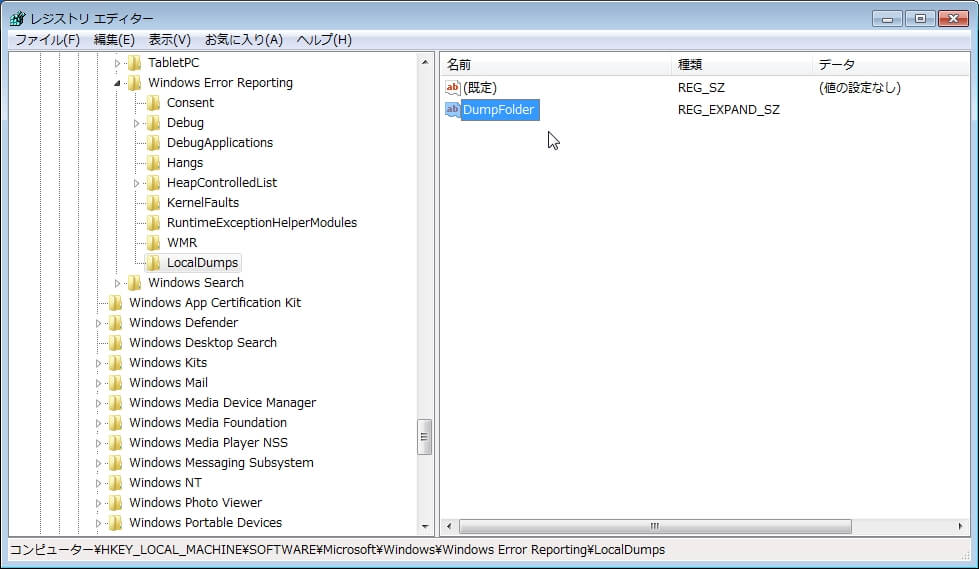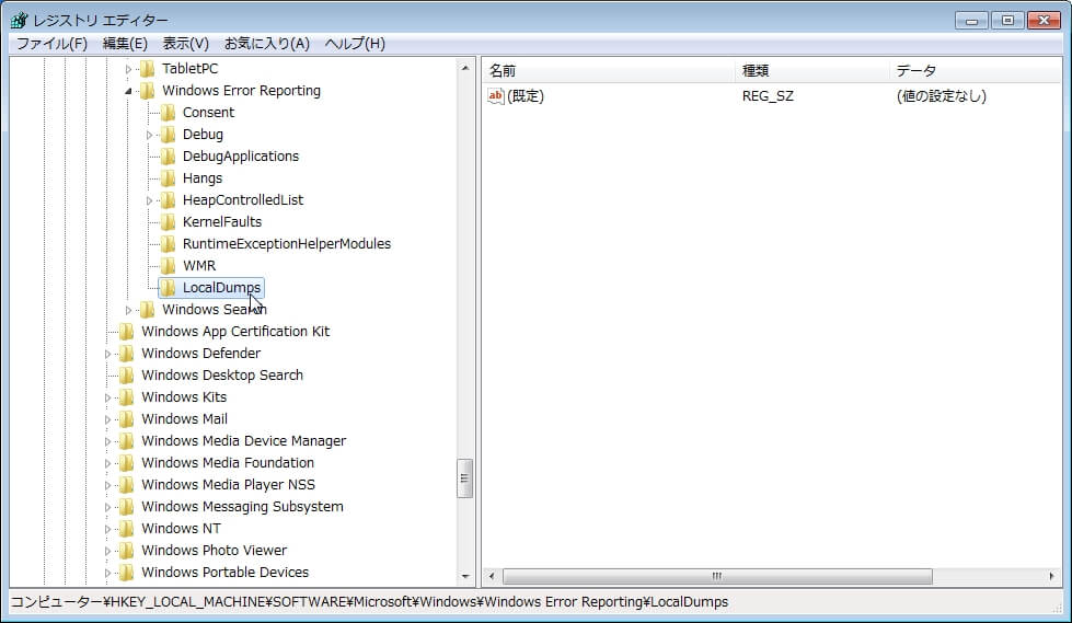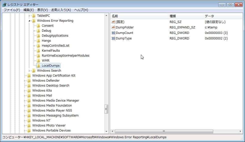 Windows Error Reportでクラッシュしたプロセスのダンプを採取するための設定