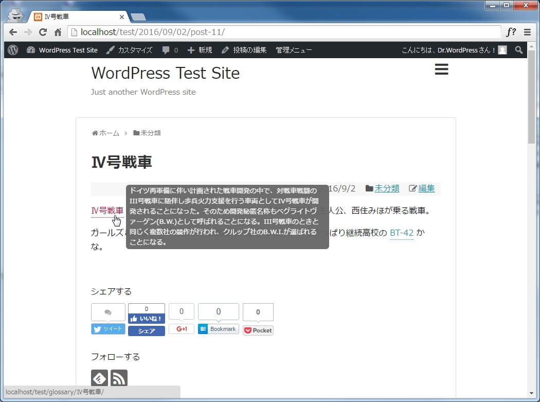 リンクされた用語をマウスオーバーすると以下のようにツールチップで解説文が表示されます。