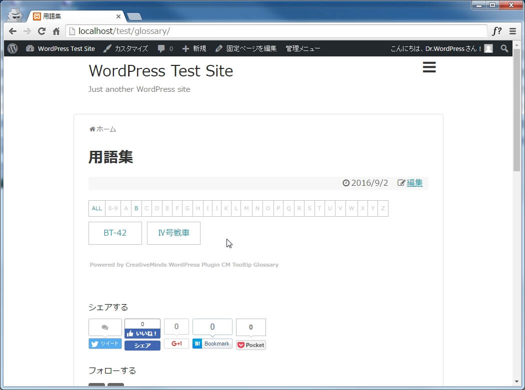 「CM Tooltip Glossary」は、用語集の自動作成、用語集に登録した単語の自動リンク、マウスオーバーした際にツールチップ(吹き出し)で用語の解説文を表示してくれる便利なプラグインです。