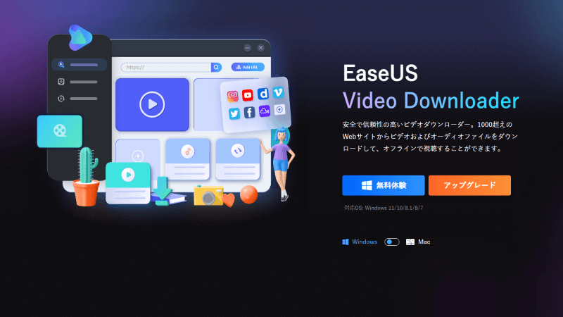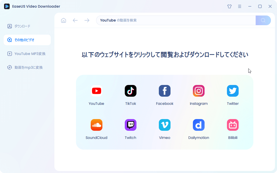 主にYouTubeを例に説明してきましたが、EaseUS Video DownloderはYouTube以外にもTikTokやFacebookなど1000を超えるサイトに対応しています。