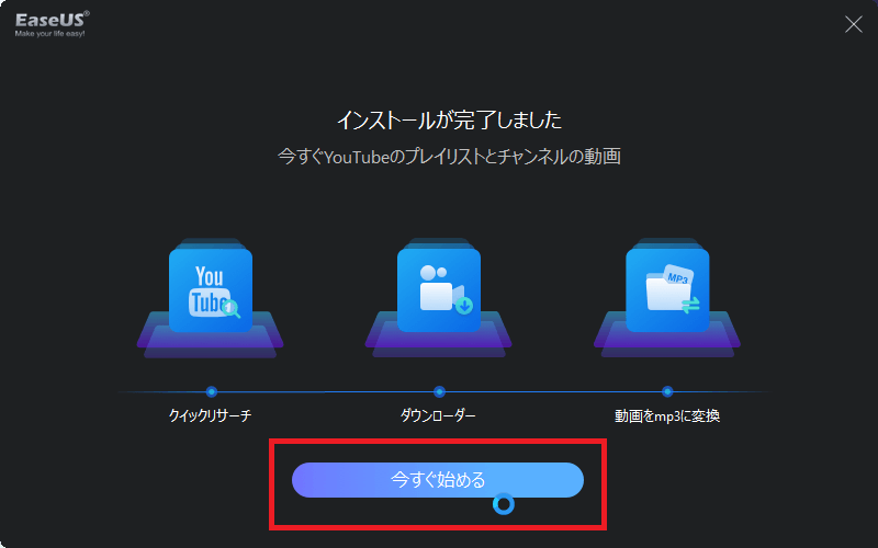 インストールが完了するとこんな画面が表示されるので、[今すぐ始める]をクリックしましょう。