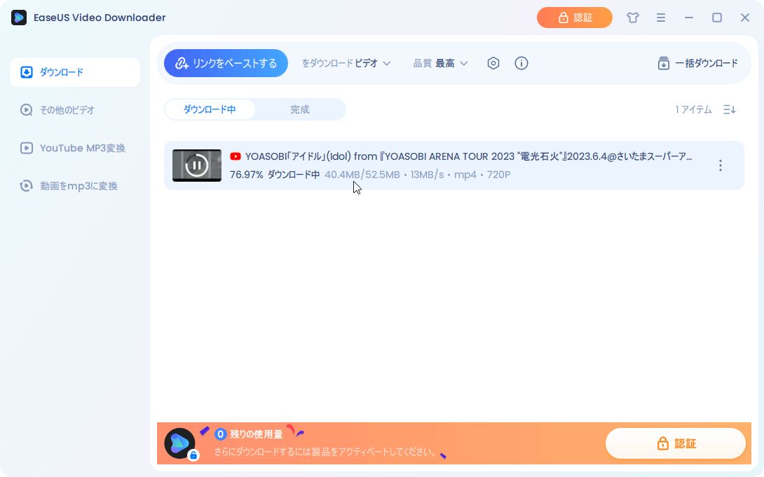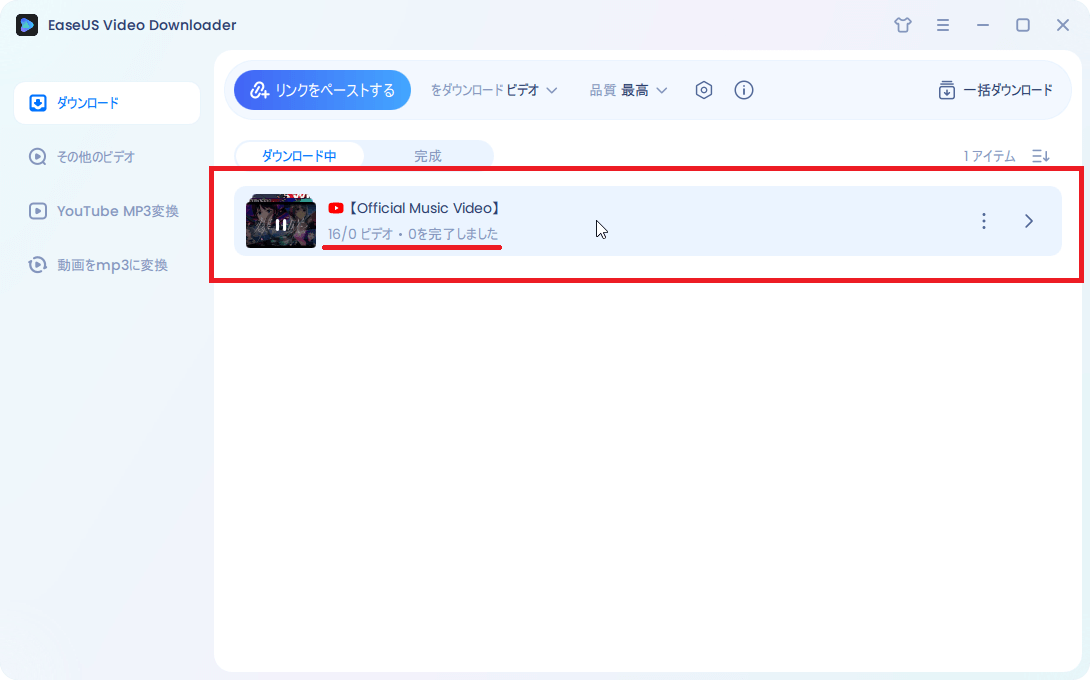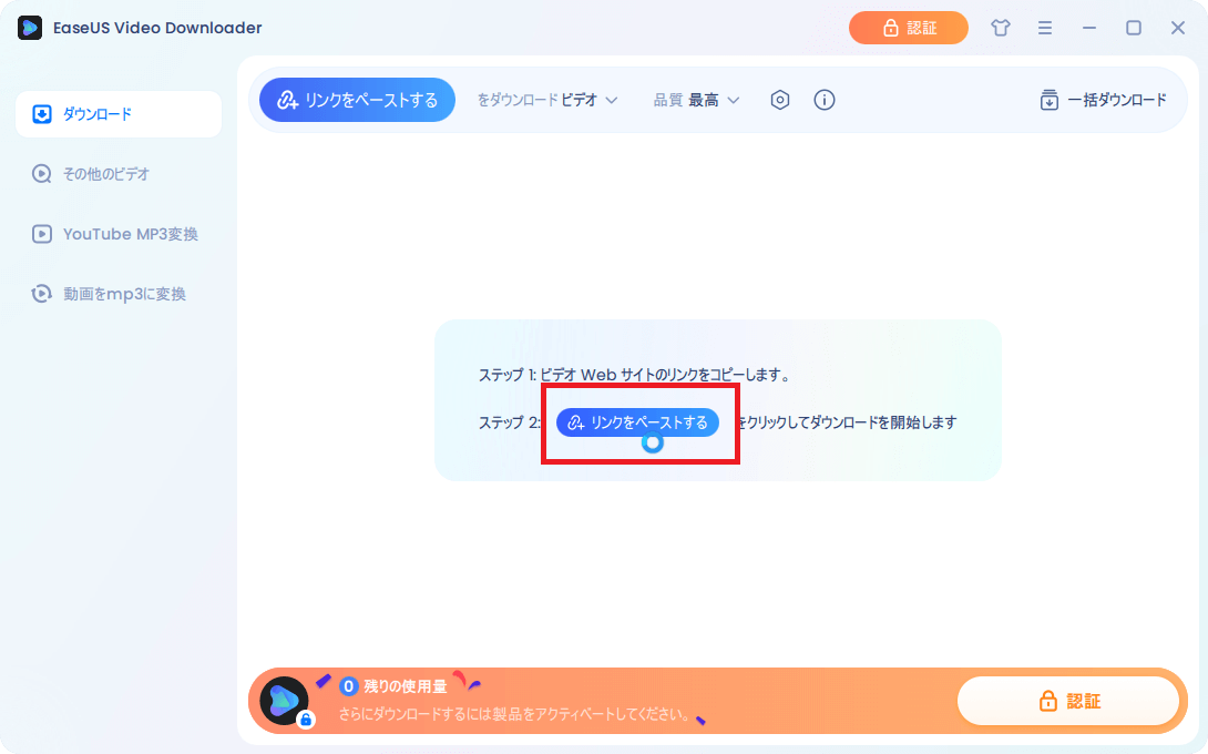 コピーしたらEaseUS Video Downloaderで[リンクをペーストする]をクリックするだけです。