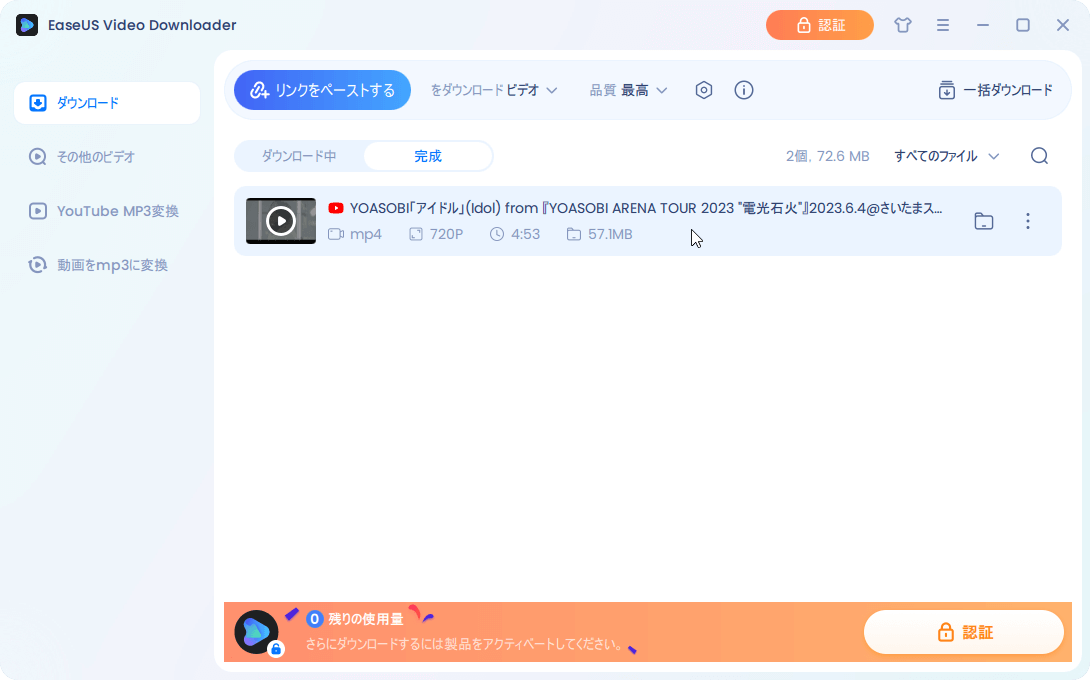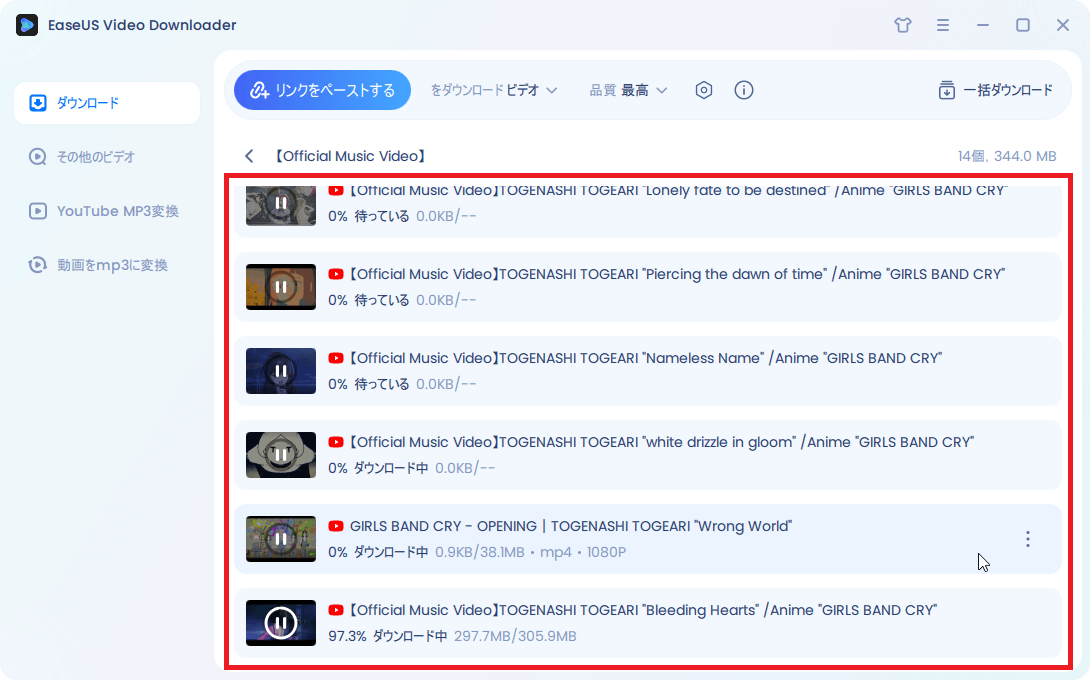 ミュージックビデオから音声だけを抜き出して、音楽ファイルとして一括してダウンロードすることができます。