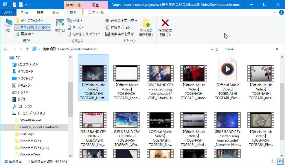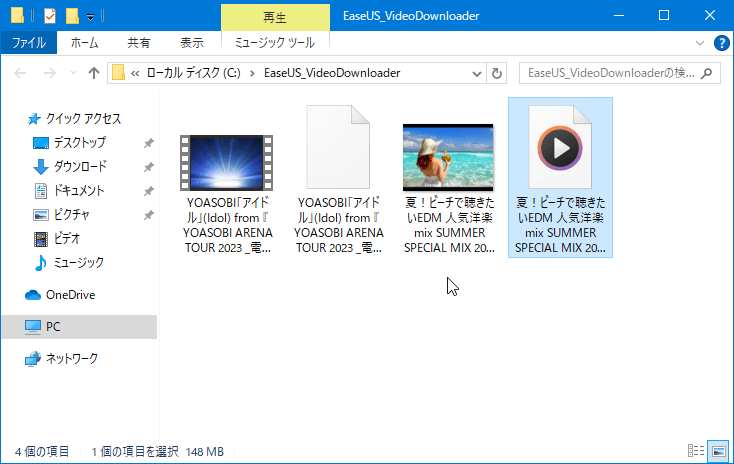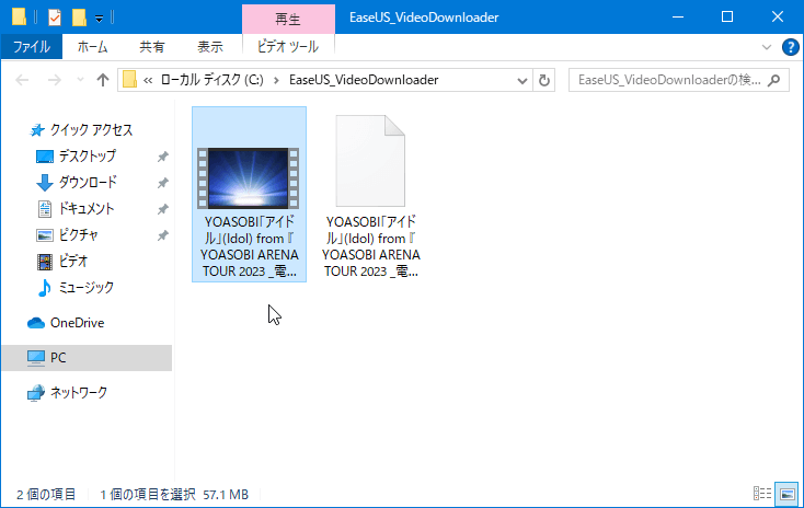 ダウンロードが完了して保存先フォルダを見ると、こんな感じで動画ファイルが作成されています。