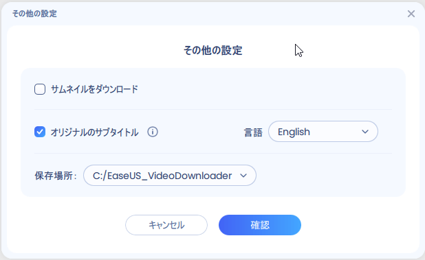 EaseUS Video Downloaderのオプションボタンをクリックすると、ダウンロードする際に指定できる各種オプションが設定できます。