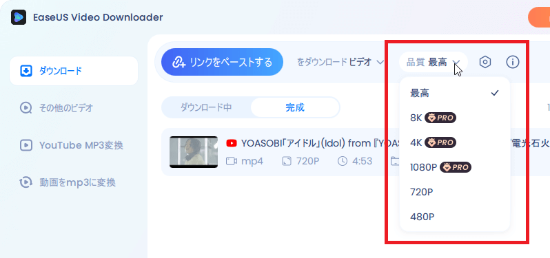 | ダウンロード画質 | 480P, 720P | 480P, 720P、4K, 8K |