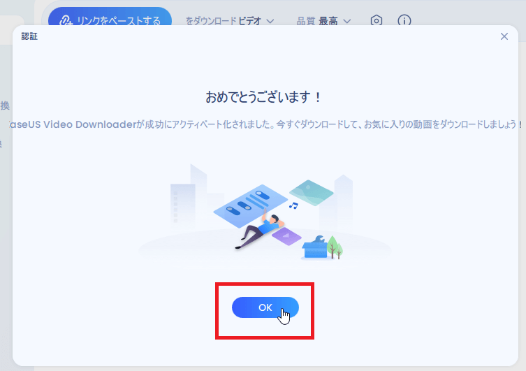 認証されると以下のようなメッセージが表示されて、アクティベートが完了、機能が無制限になります。