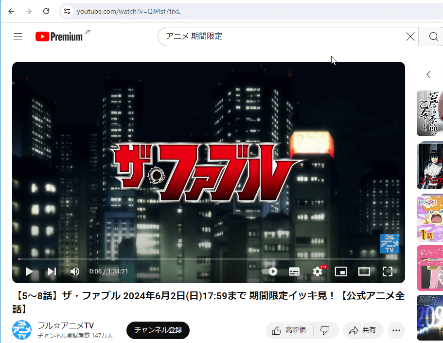 YouTubeではちょくちょく公式チャンネルからアニメや映画をフルで期間限定で公開している場合があります。