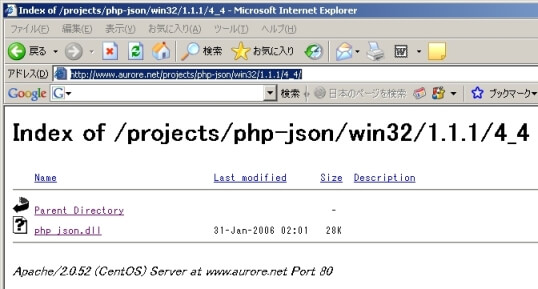 以下のサイトからSugarCRMに必要なPHPの拡張モジュール php_json.dll(PHP4.4用)をダウンロードします。 SugarCRMは、php_json.dll のバージョン1.1.1を使用します。