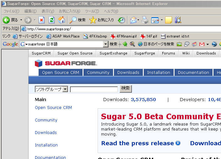 SugarCRM インストール手順として、まず最初にSugarCRM本体のダウンロードについて覚書