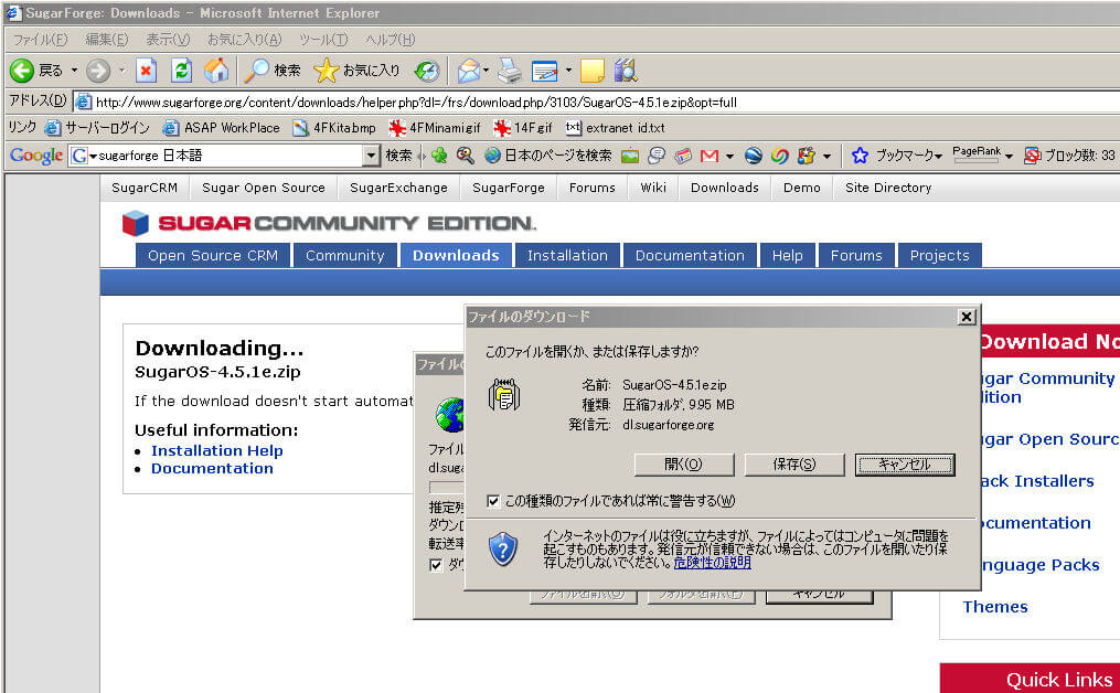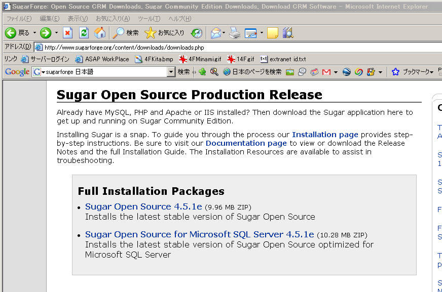 まずはSugarCRMをインストールするために必要なファイルをダウンロードします。