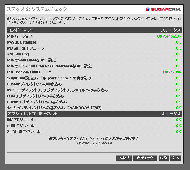 SugarCRMインストール前提条件