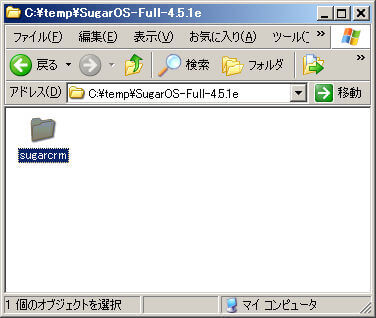 作成されたフォルダをダブルクリックし、さらに下の同名のフォルダの名前を「sugarcrm」に変更します。